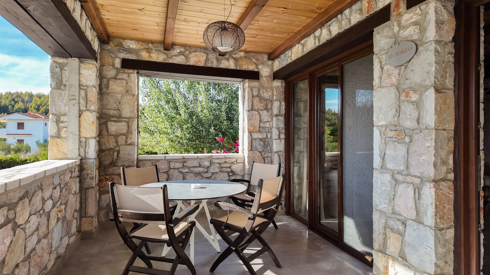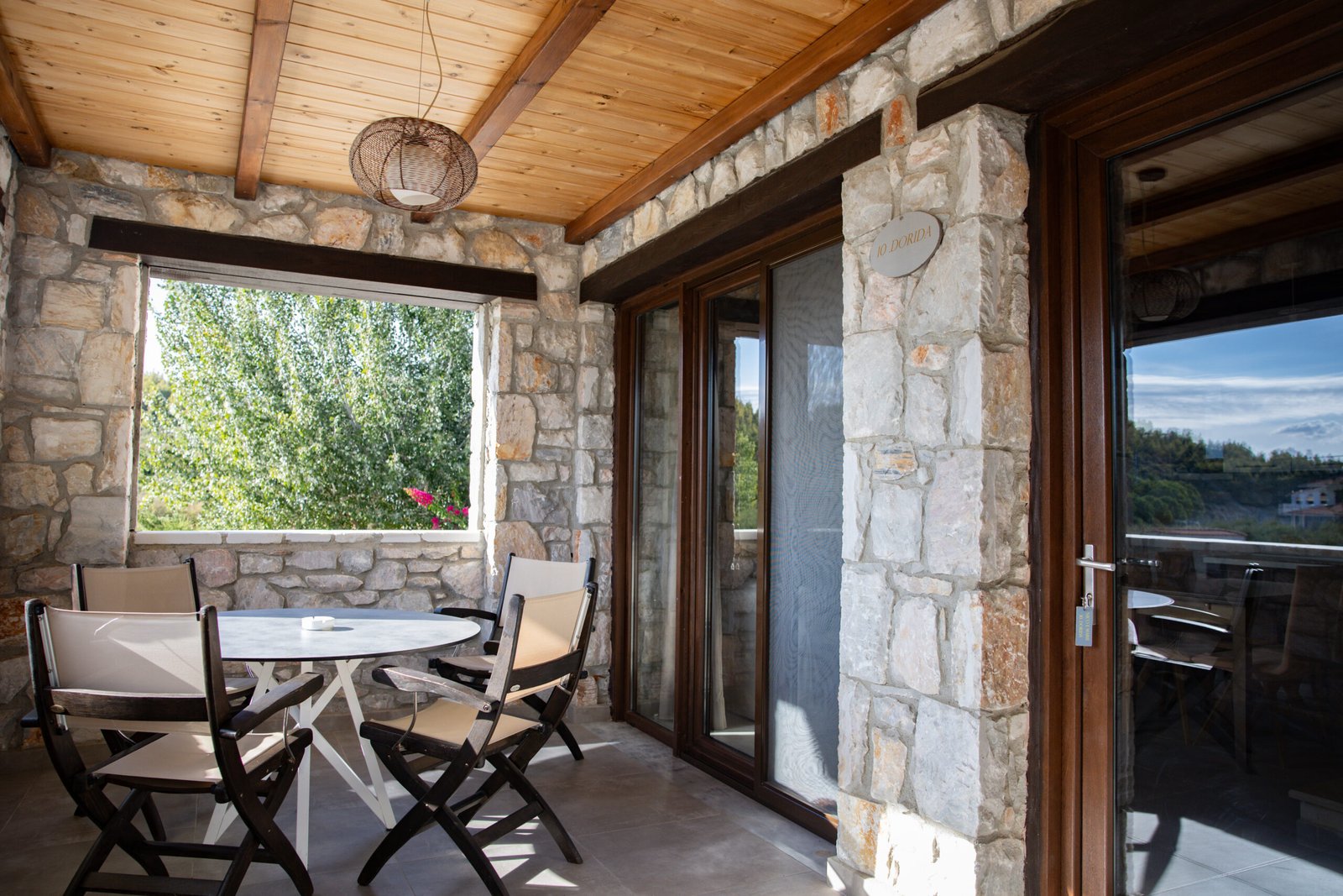 Στην άνετη κλειστή βεράντα με τραπεζαρία και θέα στη θάλασσα μπορείτε να απολαύσετε το πρωϊνό και το γεύμα σας.
