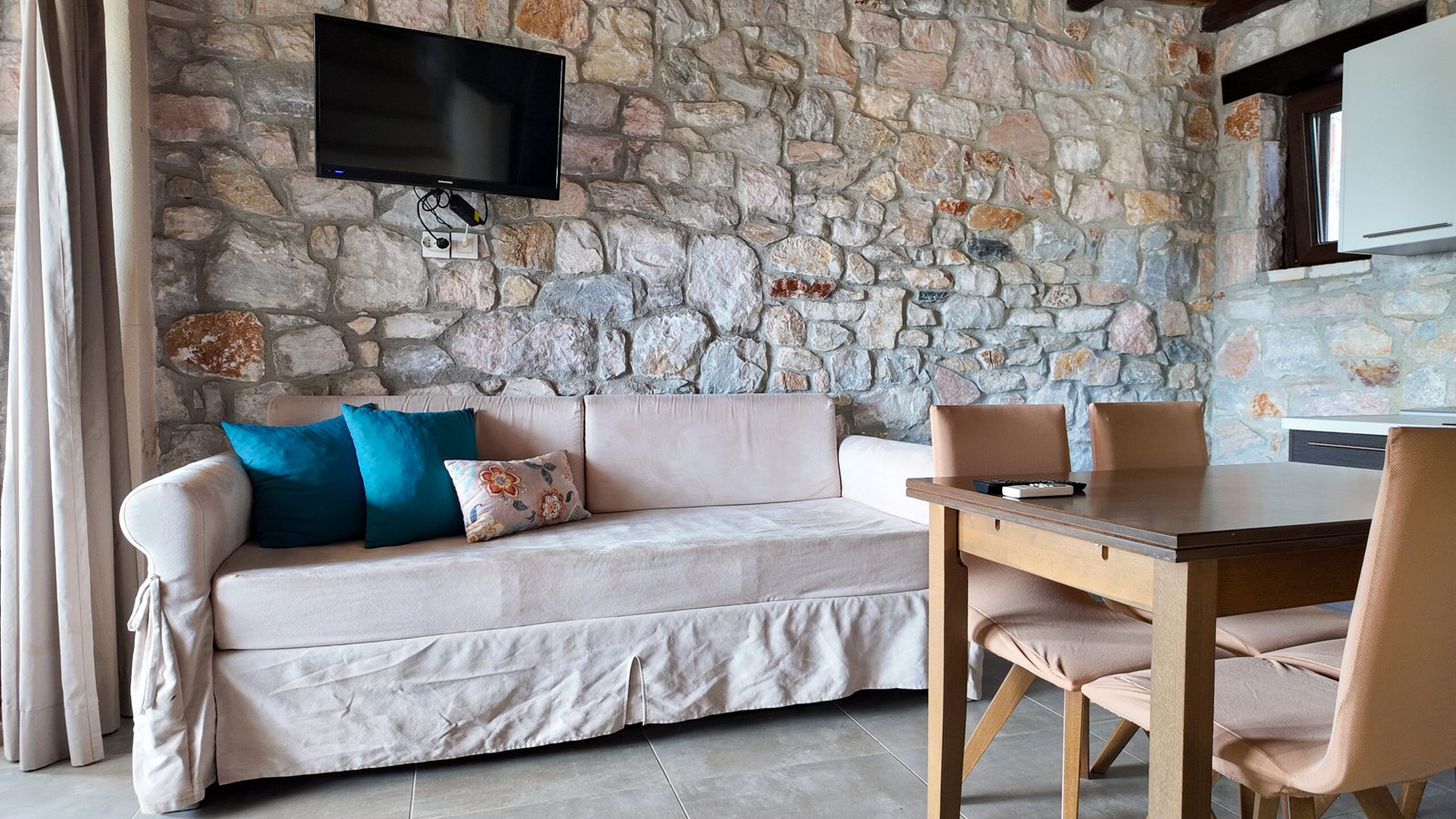 Μεζονέτα με θέα στη θάλασσα μπροστά και θέα στο βουνό πίσω, μπορεί να φιλοξενήσει 4 έως 6 άτομα σε μια έκταση 95 τ.μ.